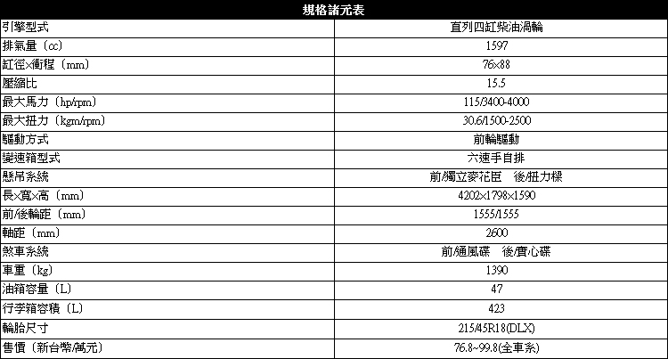 不過在減速後的再加速乃至於重踩油門的急加速反應上(簡單說就是動力輸出的彈性或對應運動化操駕的能力),與歐洲一些對手相比顯得失色。但考量到其「國產車」等級的價位,其表現已經相當可以接受。還有一個值得一提之處就是,就過去試駕柴油車的經驗來說這具引擎的運轉聲的寧靜度已經有相當的進步。