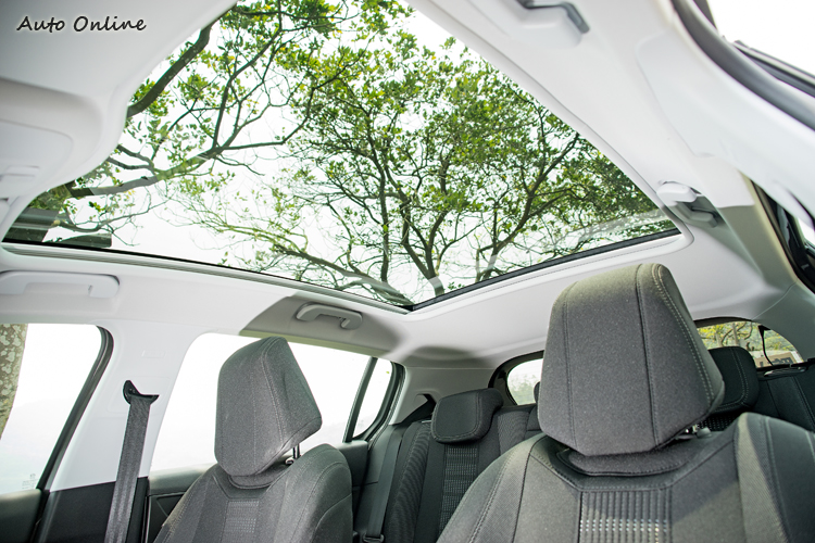 ![]() ▲頂規的Allure+車型多了運動化套件,鼓動車主的駕馭熱情。而我們這次所試駕的頂規車型(Allure+)在配備上主要的差異則是多出Dyanamic Pack運動化套件。長按排檔座後方的「Sport」按鈕後,變速箱就會進入運動化模式讓油門反應更積極,同時儀錶板也會變成紅色發光顯示,中央行車顯示幕會以長條表顯示馬力、增壓值與扭力輸出,方向盤的轉動手感也會明顯變重一些,連排氣聲浪都會改變,接近V8引擎的聲浪特性。就算不是開性能車,車主還是有權力讓自己小High一下。對於獅迷來說,這下又多了一款高經濟與實用性的選擇。 ![]() ▲總代理限量推出Active車型免費升級全景天窗。