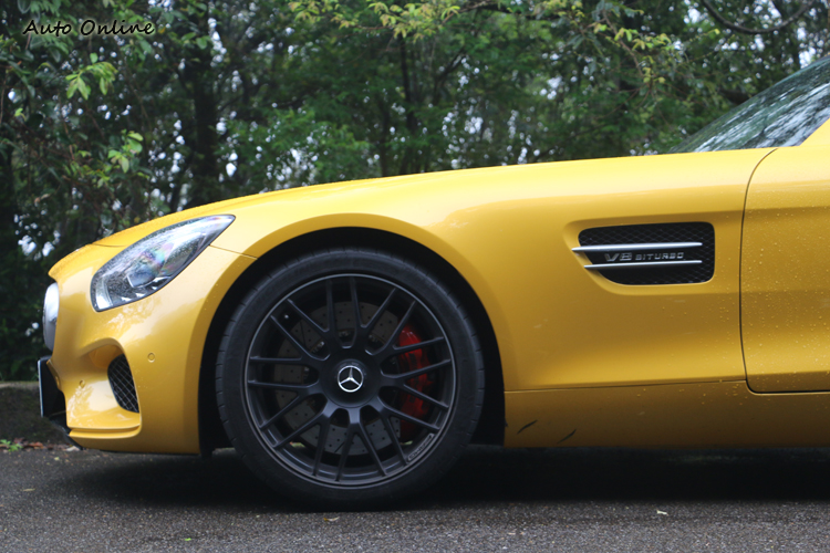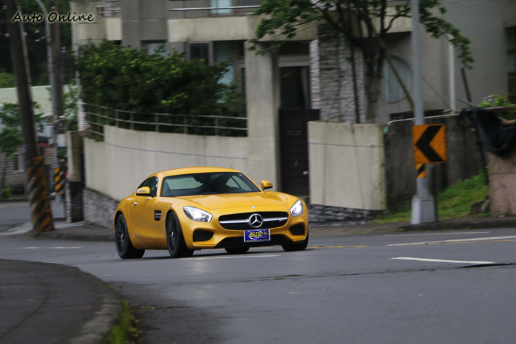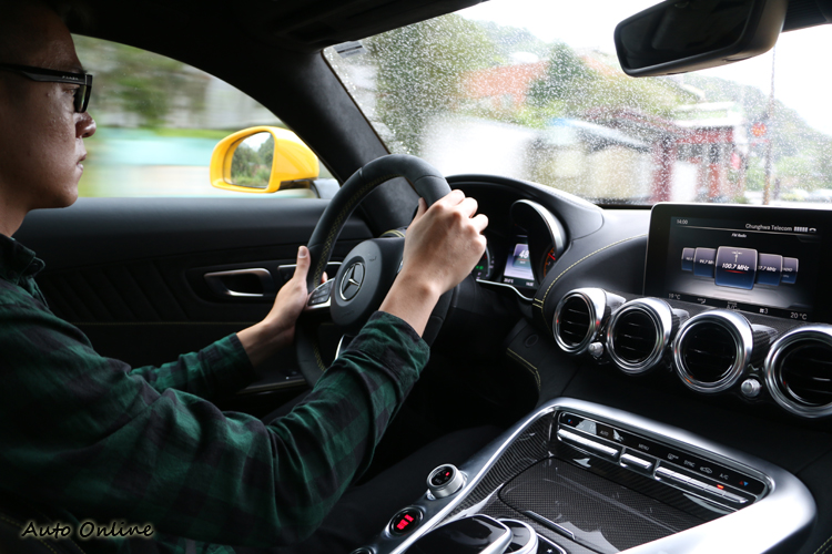附帶一提,這部試乘車選用的是AMG專屬的「陽光黃」車色,雖然這讓我們停在計程車陣中會有點尷尬,不過路上如果看到有這種車色的GT S,最好還是離它遠一點,因為這個車色選配價高達45.5萬元!選用其他消光色頂多只要8.8萬,只能說為了「專屬」這兩個字,就會貴得莫名其妙。