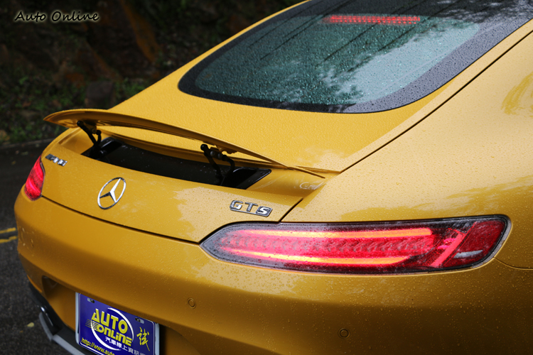 ▲車尾翼是電動升降設計,不過和大部分的車一樣,隱藏起來比較好看。