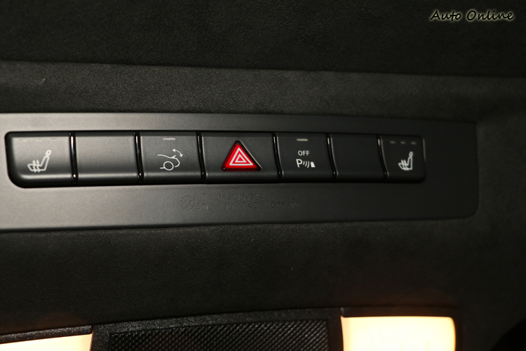 ▲車頂上方有座椅加熱、升降尾翼、雷達輔助畫面等控制開關。