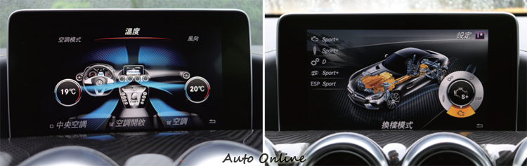 中央則是COMAND Online系統的旋鈕和手寫觸控板,以及後方的排檔裝置。由於手動換檔已經全部由方向盤撥片取代,排檔桿只留下R-N-D的檔位,與按鈕直接進入P檔的設計。