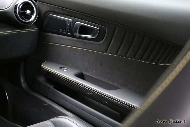 ▲門板上的裝飾也相當講究,真皮、金屬和碳纖維全用上了。