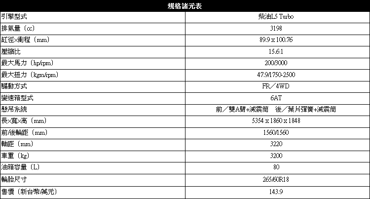 至於它的4WD設計,在排檔桿旁的電子式旋鈕加力箱提供2H/4H/4L三種加力模式,平時能以後輪驅動省油駕駛,遇到後輪懸空打滑時還能啟動電子後軸差速器鎖定,把動力平衡輸出至後軸脫困。光是這套裝備就足以讓它征服各種地勢,更何況離地高度達23.7cm,還有80cm的涉水能力,都是對付野溪等艱難地形的利器。