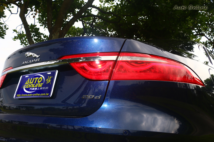 外觀線條承襲自家經典跑車F-Type元素,只是在XF身上做了偏向四門轎車的轉變,所以說XF是一輛四門Grand Coupe一點也不為過。前後燈具大量採用LED作為光源,包含日間行車、尾燈、第三煞車燈等。