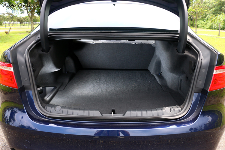 雖然柴油動力沒有汽油引擎有著豐富面向,轉速延展性不高卻可在低轉速發會較大的扭力,起步的瞬間就能得到明顯加速度,只是很快地就達到柴油轉速極限,頻頻換檔才能延續加速力道。操控表現上JAGUAR下足功夫,使用75%鋁合金材質來打造車體,與前一代相比輕了190kg,策略性在B柱與安全性構造穿插傳統剛材,盡可能將車身重量配置達到50:50。前鍛造鋁合金雙A臂、後一體式多連桿設計,如果不論引擎動力,單單評論它在山路上的操控,老實說以一輛E-Segment級距的房車來說,轉向精準頗有樂趣,但因車身尺碼關係不力小彎急駛。