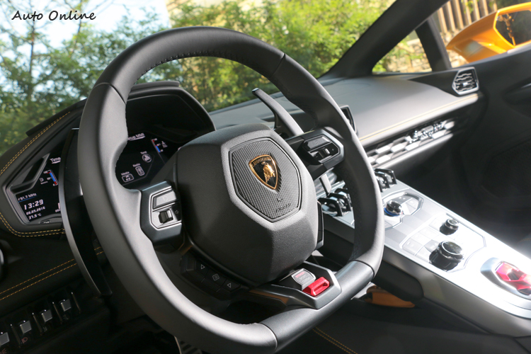 外觀變動尋求前輪下壓力![]() ▲為了增加前輪下壓力,前保桿進氣壩造型做了調整。改為後驅的Huracán LP 580-2在外型上沒有做太大變動,前進氣壩口徑、造型改變,後保險桿、尾燈有所異動,車側拿掉車型銘牌,其餘都與四驅版本相同,非常符合低調不招搖的個性。 ![]() ▲車尾翹臀增加後輪下壓力,保桿樣式同樣有小變動。![]() ▲內裝維持與四輪驅動相同,以駕駛導向為基礎。![]() ▲三幅方向盤尺寸適中,握感有超水準演出。![]() ▲車內按鍵刻意機械化來彰顯戰鬥化內裝氛圍。![]() ▲雙前賽車座椅如同懸吊展現硬派作風。![]() ▲車內的Lamborghini銘牌與黃色縫線為選配套件。