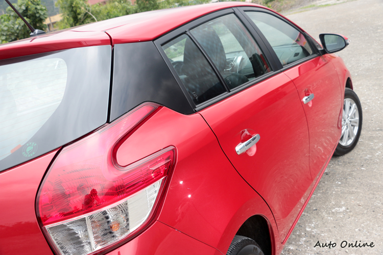 外觀小美容![]() ▲車頭利用顏色的轉變增添新氣象,大面積的水箱護罩有點類似高端品LEXUS風格。汽車編輯工作模式中,很少有兩輛不同車格的產品同時試駕、拍照(除了捉隊評比之外),就因為這兩輛車只有車身造型差異,其餘像是內裝、引擎、變速箱幾乎是同一個模子刻出,為了可以讓消費者一次了解兩輛車,我們就決定一次剖析兩款車小改款後的進化。 ![]() ▲C柱在改款前就已有刻意染黑處理,達到類似懸浮式車頂的概念。![]() ▲VIOS大面積尾燈營造出沉穩氛圍,行李廂長條鍍鉻飾條與車頭互輝映。再來看看小改款VIOS,同樣的沒有明顯造型改變,甚至能說外型根本沒變動。車頭藉由廠徽向兩側延伸的鍍鉻水箱護罩與晶鑽頭燈線條結合,搭配盾型引擎蓋、倒梯形下氣壩設計,及由車側前後延伸的立體折線造型,勾勒出魅力十足的時尚動感新主張。艇型車頂設計、後視鏡及後尾燈的空力穩定鰭,加上四輪前空力擾流片,創造出超低0.28Cd風阻。豪華版車型搭載前後空力套件,穩重的四門房車底下又帶點運動跑格氛圍。