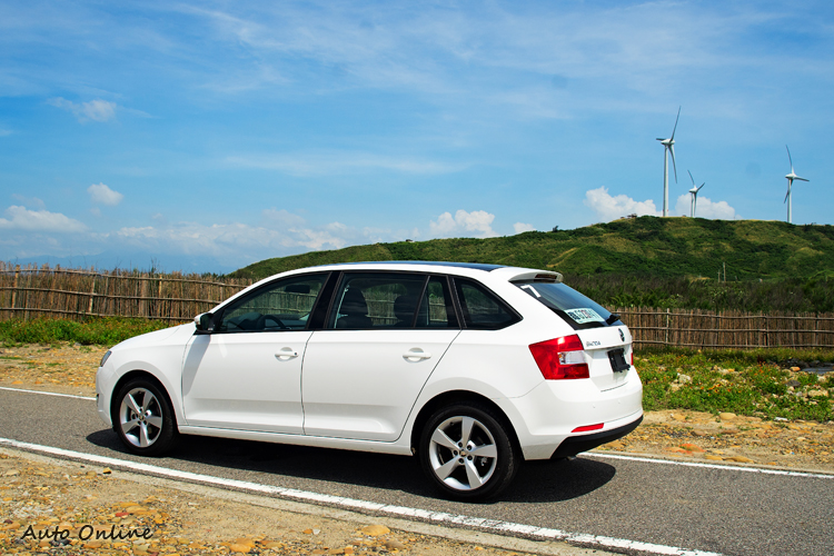而說起Rapid Spaceback的外型,Hatchback、Sportback的方式有所不同,其車尾造型的確有些特別之處。一般傳統掀背車頂線條到了D柱處正如同相對於一般對掀背車稱呼為就大角度翻折而下,D柱線條也顯得粗厚;Spaceback車頂線條到D柱後轉折角度比較小,比較有延伸感,D柱也略細些,看起來會有些接近旅行車。