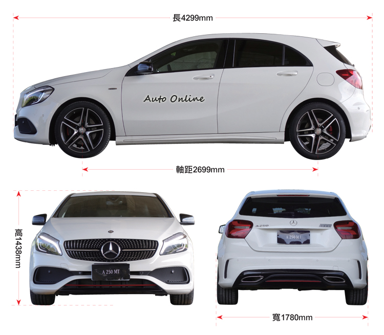 ![]() ▲手排款同樣配備紅色煞車卡鉗,不過多了夜色套件,後視鏡外殼為黑色處理。就如同前言說過的,A250 Sport MT大致上和七速手自排的A250 Sport大同小異,車尾雖然沒有特別標示出它的特殊身份,但外觀細節上還是可以找到一點不同。首先就是它是A-Class全車系唯一標配標準型LED頭燈的車款,而且搭配的AMG 18吋鋁圈型式也和自排車型不一樣。其次,MT版的B柱以後側窗、下緣飾條及後檔玻璃的部份,由於標配夜色套件的緣故,所以都採用暗色處理,後視鏡外殼也採用亮黑色。車頭水箱護罩採用的是亮黑色單柵與鍍鉻飾條,其餘就和自排車型一樣,標配就是前後擾流和側裙附紅色飾條,並且配上紅色卡鉗及雙排氣尾管。