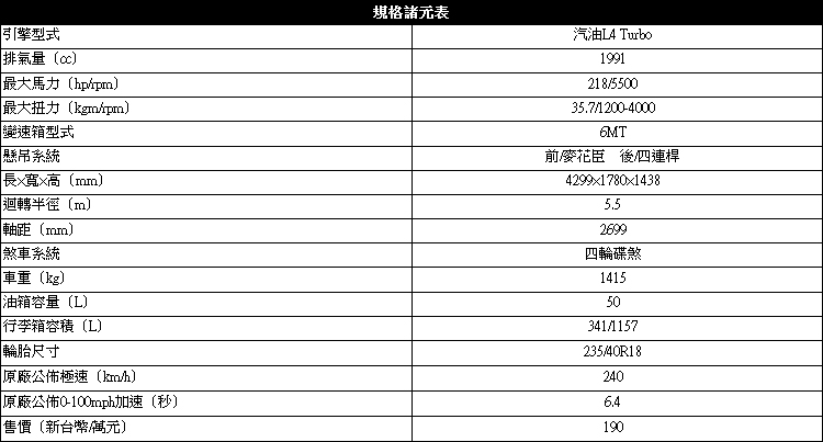 親和力十足的設定![]() ▲手排款動力系統維持2.0升渦輪增壓系統,加速及極速表現也與一般7速DCT車型完全一致。關於配備的使用已經介紹很多次,這裡就不多佔用版面了,直接進入操駕體驗。這具六速手排的排檔頭造型相當傳統,金屬結合皮質的包覆握感比預想還好,也不至於滑手。檔位雖然稱不上乾脆明確,但也不會模糊,排檔行程其實有點長,加上離合器的回饋力道適中,因此屬於輕鬆就能操作的特性。我們認為就算初次接觸這款車也不用怕容易熄火,況且它還有Auto Hold、斜坡起步輔助等功能,一般駕駛應該立刻就能上手。附帶一提,儀錶所出現的換檔建議,和大多數的手排車一樣,目的都是為了節能不是保護引擎,所以如果真的按照儀錶指示排檔,或許真的很省油,但肯定變得很無力。 ![]() ▲雖然沒有性能車的衝勁,不過靈活又聽話的特性就足夠了。![]() ▲想開好手排車不需要賽車手的技術,但基本的手腳協調性和韻律感還是要夠好。![]() ▲電池掛點利用下坡就能「頓發」,也是手排車才能享有的專屬福利。