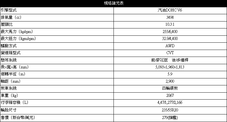 充沛的大排量動力![]() ▲VQ系列引擎連續14年獲選10大引擎獎項,以輕量化、高效能訴求開發。切回正題四大方向,動力部分QX60搭載一顆VQ35DE的自然進氣引擎,聽到這如果你是柴油控可以直接跳過,但你是大排量自然進氣車迷相信你對這顆引擎應該很了解。VQ系列引擎連續14年獲選10大引擎獎項,以輕量化、高效能訴求開發,最大馬力創造出255hp與32.9kgm最大扭力,運轉精緻順暢、動力隨傳隨到,拉高轉後的聲浪不是渦輪增壓車可相提並論。再搭配Sport-tuned CVT運動化無段變速系統,流暢的加速反應又可模擬七速換檔邏輯,使重達超過兩噸的巨獸也可跑起來很輕盈。油耗表現先得承認無法與柴油車相比,經過測試QX60 AWD平均油耗達到每公升9.1公里,巨獸有這樣成績勉強可接受。 ![]() ▲AWD智慧型四輪驅動系統透過電腦自動分配,進行前後輪扭力輸出達到0:100至50:50的車身前後動力調整。