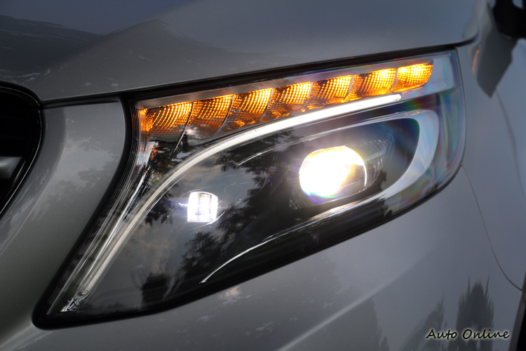 ▲V250d Avantgarde標配智慧型LED頭燈,LED尾燈組也含導光條設計。
