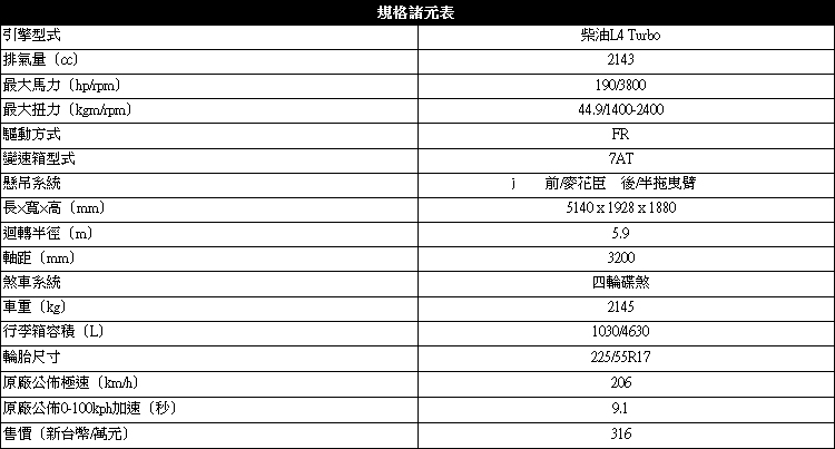 ▲2.2升柴油渦輪引擎,帶動超過2噸重的車身,加速表現仍是游刃有餘。