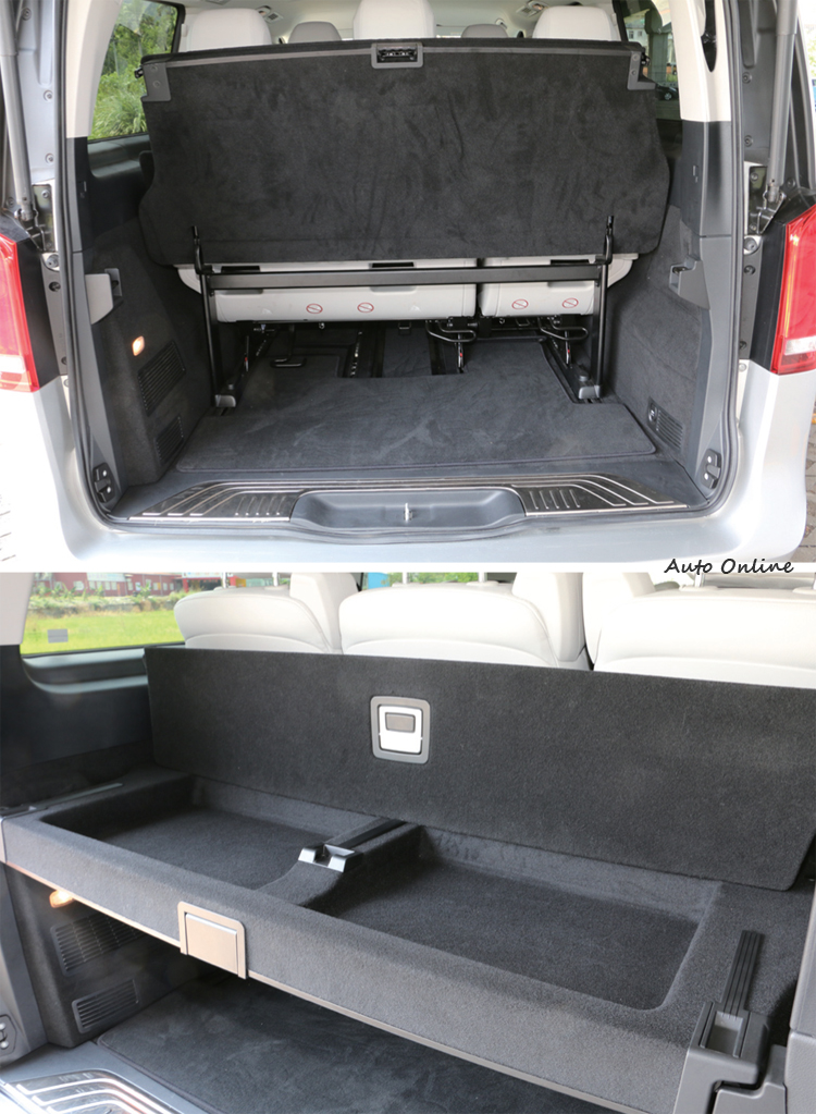 行李廂提供活動隔板的配備,隔板內部還設有附蓋大型置物格,並內覆布料減少噪音產生,設想相當週到。