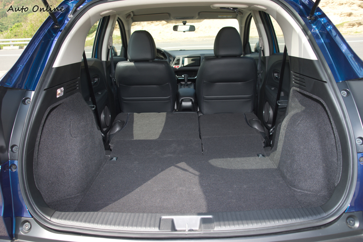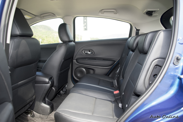 ![]() 許多原先開中小型房車的人會想改開中小型SUV,很重要的理由之一就是空間表現。HR-V在這方面表現就相當不錯。193公分的車室空間長度讓前後座都有寬裕的腿部空間,且後座地板中央僅有微微突起對於乘客在車內的活動比較不會造成干擾。頭部空間或許有人會因為外型上低扁的車頂線條而有所疑慮,不過實際乘坐之下即使是後座也比一般房車更要寬裕一些。由於座椅著座位置較一般房車高,駕駛者的前方視野高度比較接近SUV,上下車姿勢也比較自然輕鬆。 ![]() ▲前座乘坐空間充裕,側墊包覆性略弱些。![]() ▲後座腿部空間優異,頭部空間也沒因造型而被犧牲。右側座椅乘坐時晃動感較明顯。![]() ▲飲料座底部高度調整設計,方便取放不同尺寸的飲料杯瓶。![]() ▲後車門也有可置放飲料的空間。![]() ▲行李廂空間為437公升,開口形狀大,空間形狀方正實用性高。![]() ▲放倒後座後空間可直接放入兩部越野自行車。