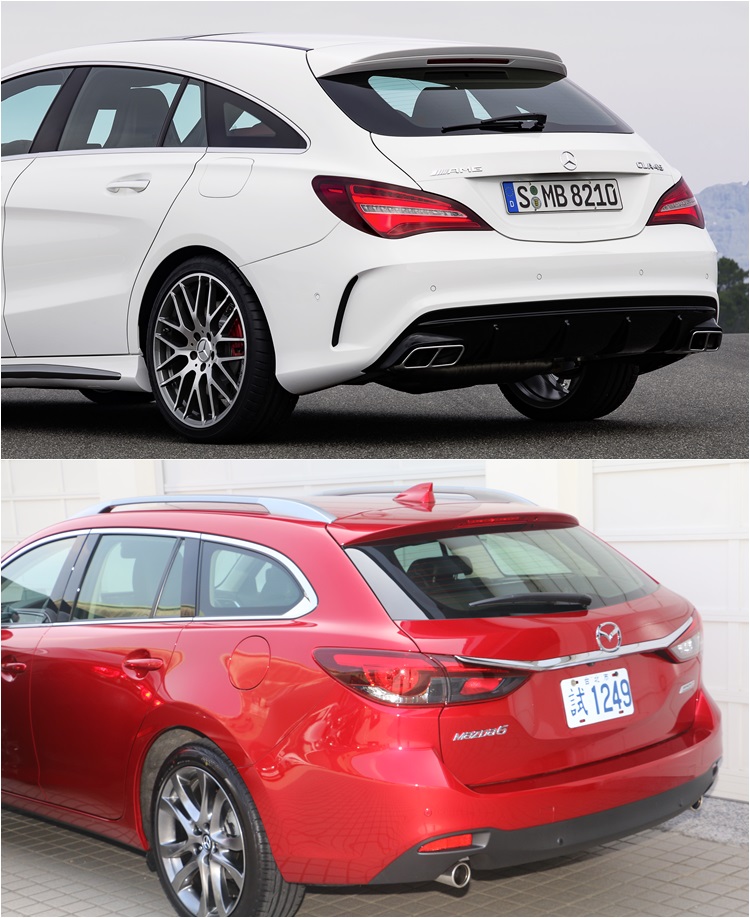 ▲Mazda6 Wagon與和CLA Shooting Brake的後半部輪廓相似,都有車頂最高點在前後座之間、尾窗幾乎傾斜達到45度等特徵。