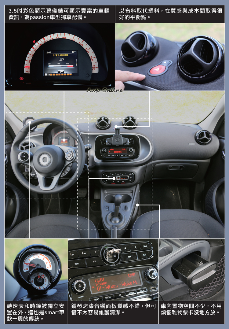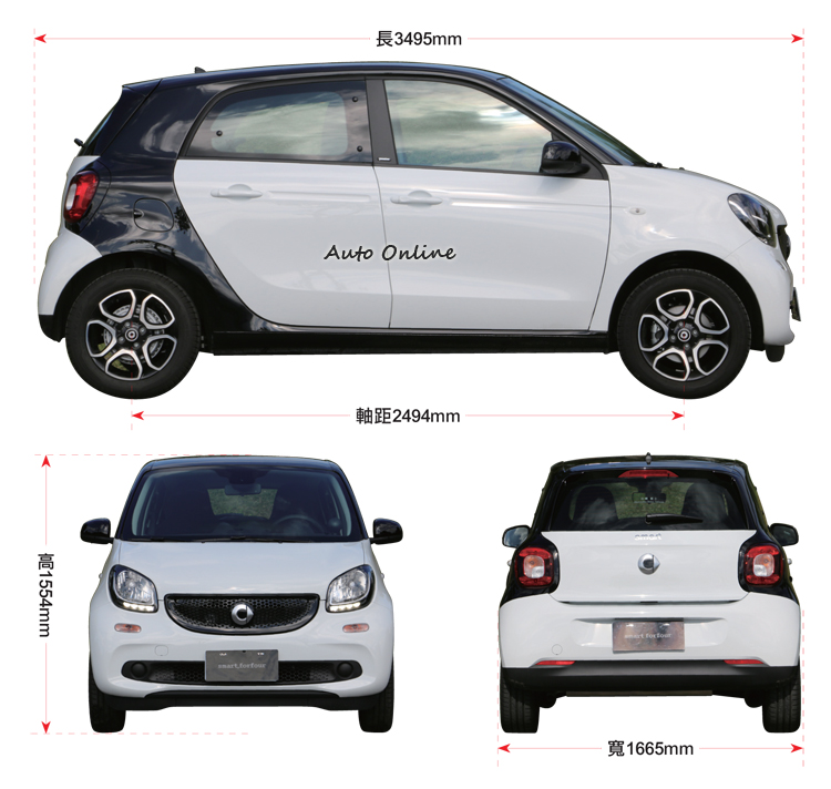 ![]() 過去我們曾經試駕過更經典的fortwo,對於forfour反倒比較少接觸,這次趁著新年式的推出,總算有機會把車借出來好好體驗“加長型”smart的特有樂趣。不過在介紹這款車之前,首先必須提醒大家別被它的四座設定所誤導!forfour雖然比起fortwo多了後座空間,但是車長仍然沒超過3.5公尺,距離大家所熟悉的Yaris、Fiesta、Fit等主流小車還是短了將近半公尺,算是屬於標準的迷你車級距。