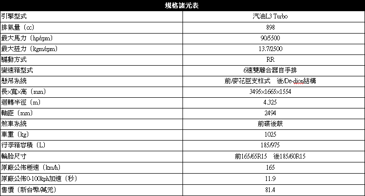 ![]() ▲由於引擎位於車尾,掀開車頭蓋只能進行基本的油水保養。forfour的懸吊結構與fortwo相同,但受惠於軸距較長以及針對多人乘坐而重新調校的結果,感覺沒有fortwo那樣顛簸,通過減速條時沒有出現過度不適。另一個讓人驚喜的特點,是forfour的迴轉半徑和fortwo一樣,只有4.325公尺!這也是為何我們認為它很適合在台灣街頭生存的原因之一,配合嬌小的身軀,再難停的停車空間也能「頭過身就過」,至於輕快直接的轉向感,也符合迷你車該有的性格。