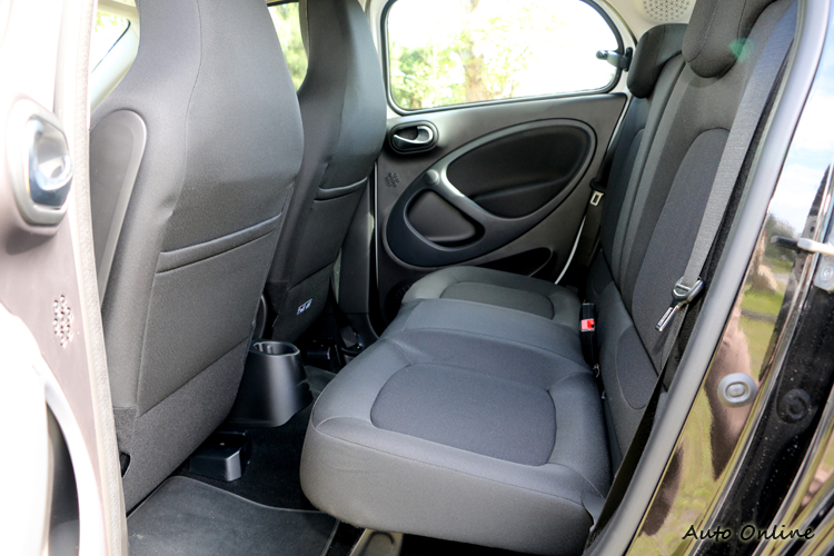 ![]() ▲設計概念上,將車輪推向四端,車廂因而獲得最大的空間。forfour的車頭造型和fortwo如出一轍,獨樹一格的圓潤風格,在改款後讓它有了更飽滿的視覺感,而早已成為品牌特色的tridion車架雙色配置,讓它擁有數十種色彩組合,展現出不受限的繽紛創意。 ![]() ▲後座空間可容納兩位成人,至於舒適性則無法奢求。![]() ▲後座只有蝴蝶窗讓乘客能夠透透氣,也算是不得已的折衷作法。