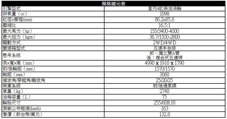 ▲搭載2.0升柴油渦輪引擎,具36.7kgm/1500-2800rpm最大扭力。