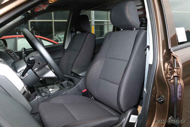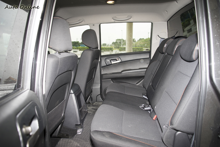 座椅為織布材質包覆,駕駛座椅提供八向電動調整功能,座椅側向的包覆支撐效果一般,不過頭枕可調整傾斜角度這一點就很不錯,因為在許多車款上都可以發現頭枕角度過於直立甚至向後傾,根本就沒辦法支撐到乘客的頭部(特別是身材較小的人);後座椅背有向後傾的角度,椅墊長度也夠,坐起來姿勢比較可以放鬆。而在舒適性與行車安全性配備上,Actyon Sport也提供了光感應頭燈、頭燈水平電動調整、雨滴感應式雨刷、恆溫空調等等,待遇跟房車、運動休旅車也沒什麼不同。