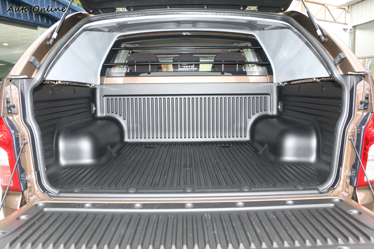 貨斗內部空間的尺碼為長:1275mm、寬:1600mm、高:525mm,貨床的面積為2.04平方公尺,且舖有全覆蓋式的防護墊,要放進一堆露營的各類帳幕與大型戶外活動用品,甚至是要方部沙灘車都沒有問題,就比較不用在出門前開始苦思煩惱,哪樣東西到底該不該帶,東西放不放得下囉。尾門可以承受至少80公斤重量,不過本身重量也不輕,所以開啟時要稍微留意一下。