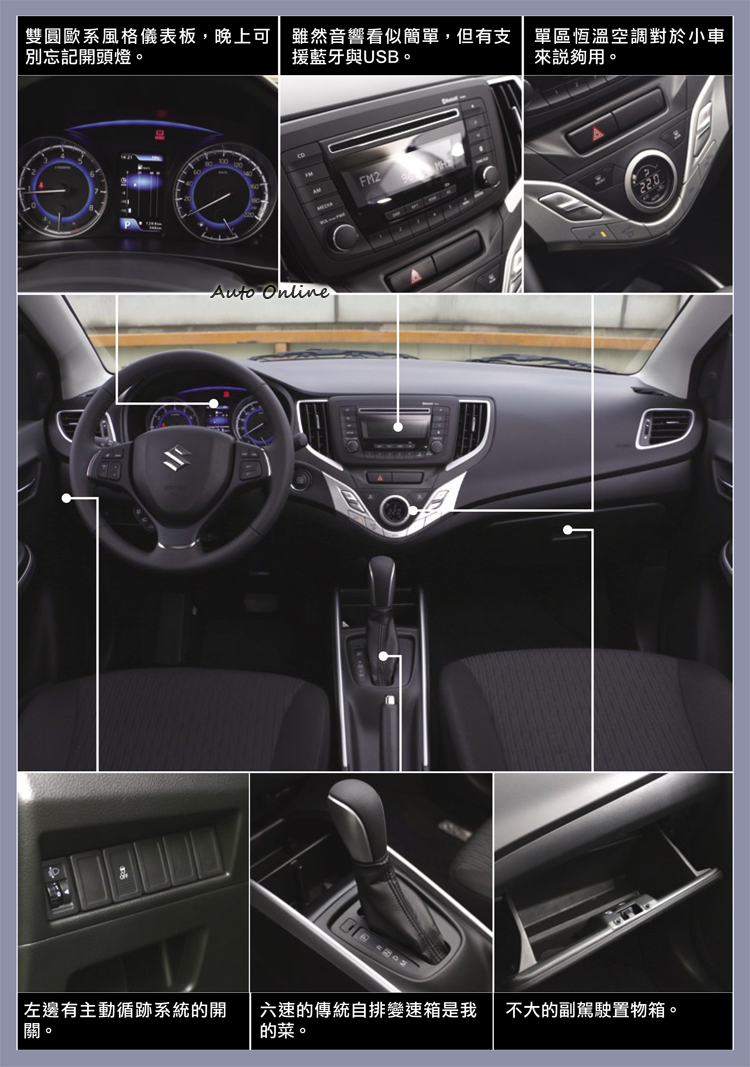 說了再多不如馬上試車![]() ▲當然有些人看到售價69.8萬元又會有些聲音,別急,你可以把相同價位車款的型錄拿出來比對一下安全配備。文前提到,Baleno是我2017年到現在,試到最令我驚豔的一輛車,這感覺是從坐進車出發的那一刻開始,它跳脫我們對於小車動力沒力、操控無樂趣、空間狹窄等刻板印象;安全配備更是以高規格看待,比起其它只有兩顆氣囊、缺少完備的主動安全車款,輕鬆分辨出誰較有誠意。Suzuki在台灣並非主流品牌,但是能有這樣的產品導入,看得出它對於消費者的重視,品牌大不代表旗下產品都是好東西,這社會就是缺少默默耕耘,不誇大海口、不冠冕堂皇,只提供最實在的車款給消費者。當然有些人看到售價69.8萬元又會有些聲音,別急,你可以把相同價位車款的型錄拿出來,仔細的去比對最重要的動力數據與安全配備,看完之後我覺得你的想法一定會跟我一樣。