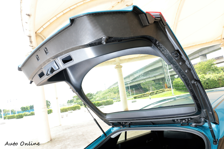 ▲全碳纖維後車尾門將車輛重心壓低以及調整車身前後配重。