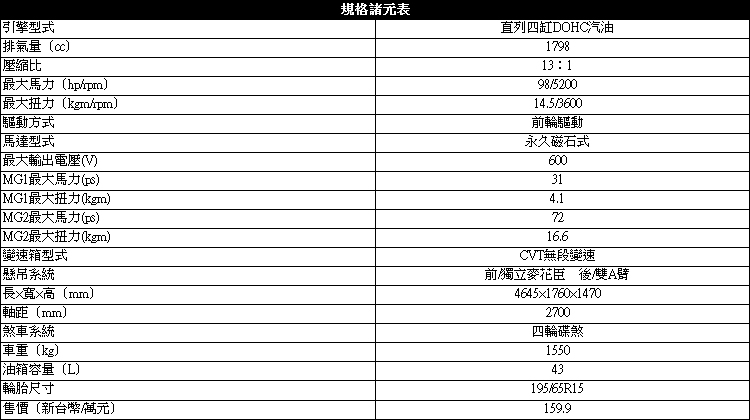 實際行駛體驗過程中,引擎幾乎很少被啟動,原廠表示純電行駛里程達到64km,最高時速更高達135km/h,要不是拍攝過程靜止又吹冷氣,我想整天試駕都看不到引擎被喚起。拜電動馬達所賜,純電模式的起步加速力道輕快,電量充足狀態下,大腳油門下去引擎也不會開啟。當車輛減速或煞車,馬達會轉換成發電機幫電池充電,不過回充的電量有限,如果電量不夠,又或者在電量不夠的情況需要大動力,引擎會自動啟動幫助充電與提供輸出,轉換時機不需要駕駛者煩憂,PCU動力控制模組會精準計算。用最節能的方式行駛,原廠給的油耗數據表現達到平均油耗109.9km/l,這應該除了電動車外沒人能超越吧!