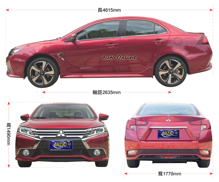 Grand Lancer外型就導入了日本MITSUBISHI最新的「DYNAMIC SHIELD(動力盾)家族識別元素,其車頭造型在日規2017年式的Outlander、RVR或美規2018年式Outlander等車款也可看見,算是最新,也與國外接軌。