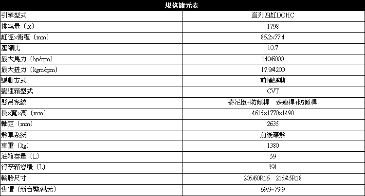 不過CVT的特色是在於要讓引擎在各轉速帶下都能有最好的運作效率,所以在中高車速下動力的延伸還不錯,不會說車速快了一些之後動力馬上虛掉。雖然以性能來說缺了些,少了點運動感與樂趣感,但對於家庭出遊代步來說實用性還算不錯,且經濟部能源局公布的平均油耗15.7km/l測試數據也達一級油耗表現。