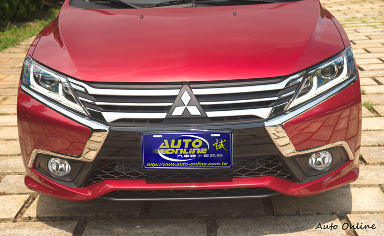 ▲頭/霧燈與水箱罩結合形成的DYNAMIC SHIELD造型是MITSUBISH新世代家族面貌。