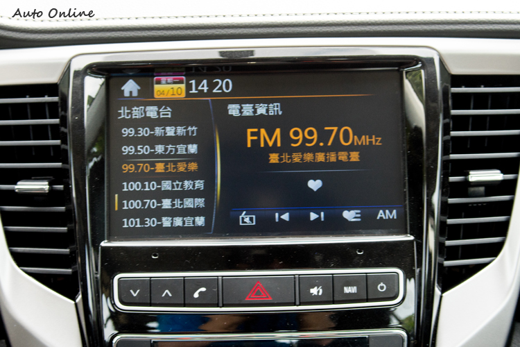 中控台中央的八吋觸控螢幕影音系統雖被列為經銷商選購配備,不過基本上經銷商都會直接配備於車上。其主要功能有廣播、藍芽、導航、數位電視與HDMI鏡射五大項。在版面呈現與操作上還算舒適直覺,但螢幕上方沒有遮光的設計,白天或光線充足的環境下容易反光影響觀看。值得一提的是,豪華型以上車型在方向盤上有個「VOICE」聲控按鍵,可用語音喚醒廣播功能或數位電視等其他功能,其實反而不如按MODE鍵來得直覺且不分散開車注意力。