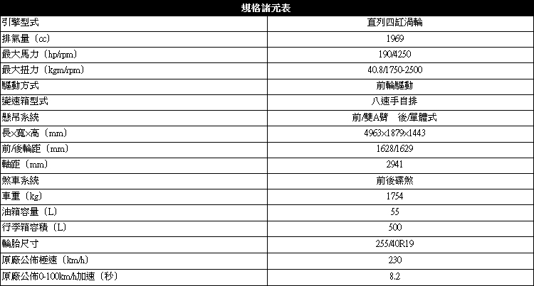 兼具節能與性能表現![]() ▲與其他家族成員一樣,S90所搭載的D4柴油引擎最大動力輸出為為190hp、40.8kgm。D4這具Drive-E家族的直列四缸雙渦輪柴油增壓引擎相信大家很熟悉,在VOLVO的60車系、90車系等其他成員中也都可以見到,在S90上動力輸出數據也沒有改變,最大扭力為40.8kgm/1750-2500rpm,最大馬力為190hp/4250rpm,搭配Geartronic八速手自排變速系統。