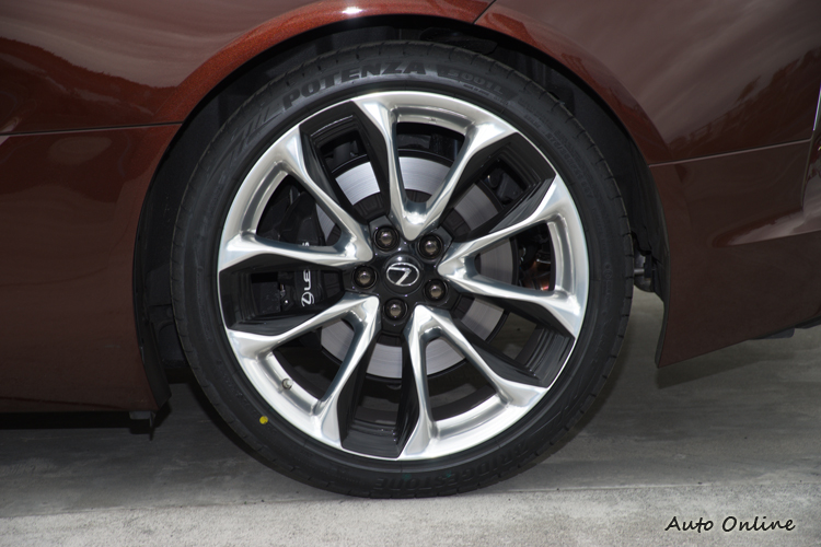 前面提過,LC車系從概念車時期邁入真實的市售車款,新開發的「GA-L」LEXUS FR(前置後驅)車底盤扮演重要的角色,在高剛性與輕量化等特性的追求之下,讓後驅車的駕馭魅力本質得以高度發揮。引擎為前中置配置,盡量讓較重的零組件集中在車體中央,CFRP與鋁合金材質使用比例也不小。