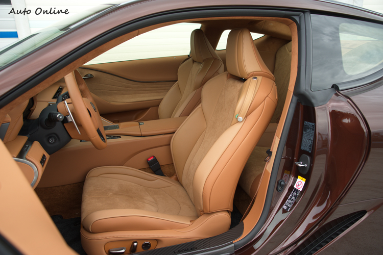 車室空間與大部分豪華雙門轎跑一樣,給人一定程度的包覆感但卻不會過於誇張緊繃,畢竟它的屬性是豪華Sport而非硬派速度機器取向,在駕馭樂趣之餘仍要注重舒適姓。駕駛姿勢讓人與車很有一體感,且不論是踏板、操控按鍵的配置、方向盤傾斜角度與座椅的包覆設計等,都考慮到駕駛時能夠更直覺就手。內裝也不採一般的飾板,而都是用皮革、Alcantara人造麂皮及金屬來鋪陳。