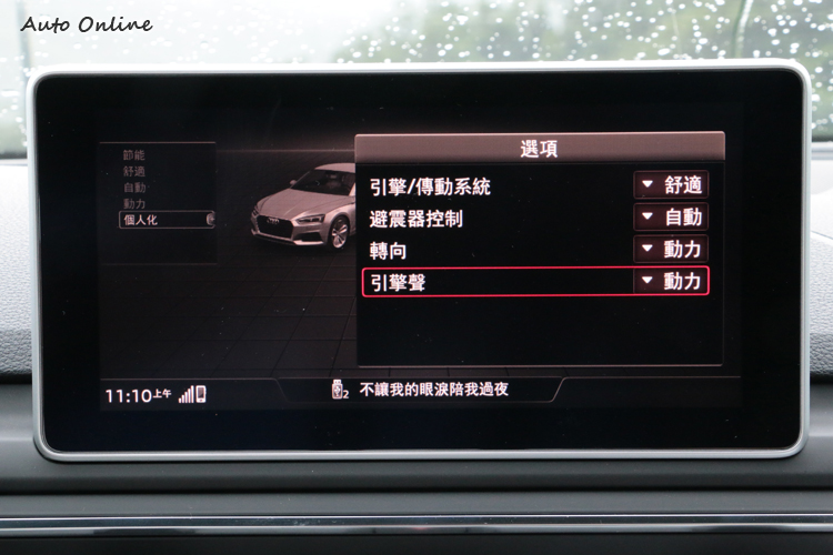 內在的先進形象![]() 作為一部豪華轎跑,如果座艙設備只有配備等級達標是不夠的,因為有能力購買這種等級汽車的買家,勢必於於它的用料質感、人體工學、便利機能或舒適程度是否到位,會有更高的評斷標準。我們認為新一代A5的座艙不僅能夠輕易符合以上的要求,而且它還多了許多令人驚喜的創新設計。對於第一次看到新世代Audi座艙空間的人,應該都會對於車內異常簡潔的佈局留下深刻印象,就如同這部試乘車所選配的S line內裝套件,銀色鋁質刷面飾板用在黑色內裝的比例恰到好處,我們特別喜歡橫貫整個座艙左右的這塊飾板,除了讓它看來很有現代感,避免了黑色內裝容易顯得沉悶的缺點。大面積飾板也突顯出中控台僅存的一小塊空調控制面板,清爽的控制區對比前代車複雜的中控台,立刻就能看出不同世代對於車輛操作介面理念的明顯差異。 ![]() ▲A5 45 TFSI quattro可透過按鍵、方向盤或MMI切換駕駛模式,也可設定屬性偏好。A5車系把12.3吋的全數位虛擬座艙列為標準配備,這套數位儀錶我們已經介紹過許多次,相信大家應該不會陌生,同樣有兩種視窗格式能夠切換,可隨時觀看駕駛資訊、導航畫面、音響娛樂或是藍牙電話的畫面,每次試駕都讓我們感覺科技進步帶來的便利性實在太強大了。