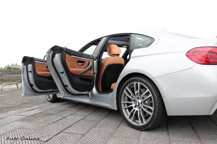 4系列Gran Coupe車型,原廠標準配備M Sport套件,將M款空力套件、M款專屬輪圈(試駕車款選配M款19吋鋁圈)、M款跑車化懸吊、緞面鋁質窗框、M字樣車側銘牌等皆列為標準配備,加強該有的運動氛圍。