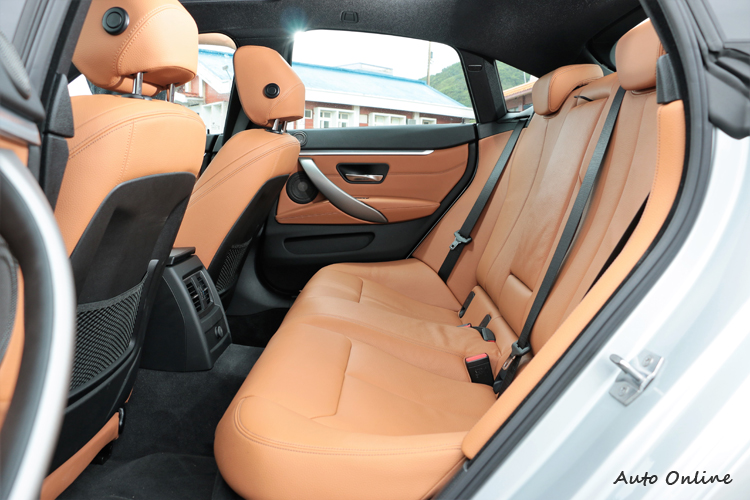 坐到後座,過程須注意車頂與頭部避免碰撞,座位採標準的五人座設定,有別於雙門跑車2+2拘謹的配置。後座膝部空間寬敞拜2810mm軸距所賜,車高1389mm足足比3系列Sedan矮了103mm,頭部稍微感受到壓迫感,但遠遠贏過雙門跑車帶來的困獸之鬥。