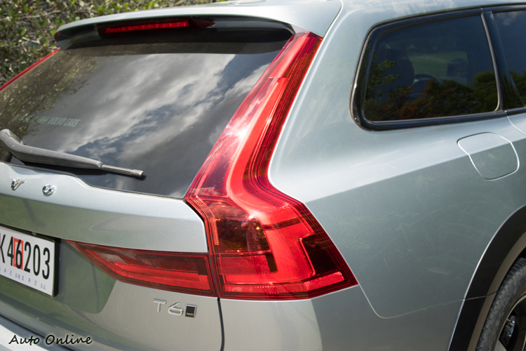 車尾在尾燈部分有得是接近XC90的直立造型而非S90的水平造型,車頂尾翼整合了第三煞車燈,加上霧銀後下護板,做出與房車調性不同的休旅味。
