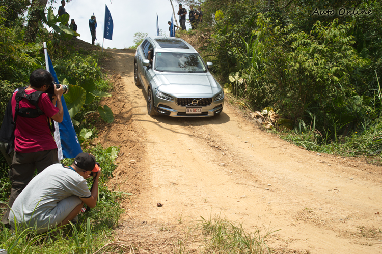 試駕場地路面為砂土石礫路面,主要的地形關卡包含了砲彈坑、顛簸險升坡、大落差、長險降坡/長險升坡、V形溝+交叉軸等,算是輕度中略有難度的場地。過去我們在S90身上體驗到VOLVO新世代SPA底盤平台在On-Road狀況下的舒適行路感,這次加上四輪傳動系統與「越野」駕駛模式之下,感受到V90 Cross Country有別於S90/V90的Off-Road駕駛樂趣。