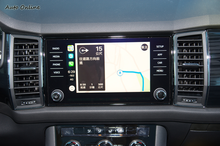 系統支援Apple的Car Play與Android的Android Auto等平台,讓你將智慧型手機與系統連結後直接將畫面投射到中控螢幕上並且直接在螢幕上操作。試駕過程中我們就是以自己帶的iPhone來播放音樂和導航在澎湖四處尋景訪勝。