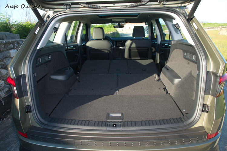 在二排五人座的情況下,Kodiaq就提供了不錯的成人乘坐空間,雖因七人座的配置關係腿部空間可能小遜VW Tiguan一點,但頭部空間就比之更佳。在七人座狀態下行李廂空間為270公升,五人座狀態則為630公升,如果是要載大量或大體積的物品,將4:2:4分離可倒後座向前放倒整個行李空間更達到2065公升,而且地板都是平整的,將副手座椅放倒的話,則可放進最長達2.9公尺的物品。