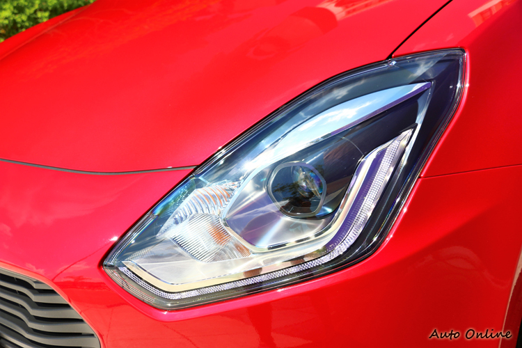 台灣所販售的Swift只有單一車型,也就是不管是外觀、內裝配備與動力都只有一種選項。就外觀來看,走的是歐系風格,這也是近期許多車廠相繼追隨的方向,好像在外觀加入一點歐系元素就能得到消費者的青睞。這樣的做法確實很成功,新世代Swift外型比起前一代更好看,前臉造型有大面積的水箱護罩,下方有類似微笑嘴臉的下氣壩,左右兩邊多角形的頭燈組,內部崁入LED頭燈與LED導光條,科技感中帶有年輕又帥氣的氛圍。