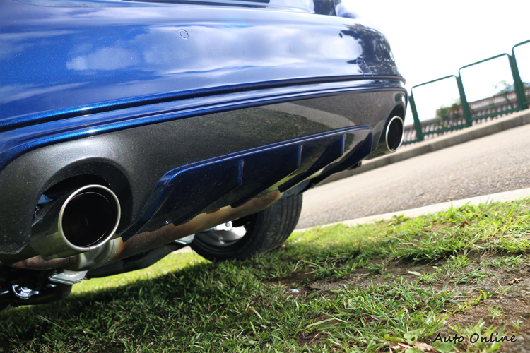 新年式強調運動風格![]() ▲車頭更低寬且延伸的前進氣壩,搭配兩側灌注賽道氛圍的鈦色F1方程式定風翼。2018年式Q50 Hybrid Blue Sport的外型設計上,車頭更低寬且延伸的前進氣壩,搭配兩側灌注賽道氛圍的鈦色F1方程式定風翼,以及線條更加銳利的Double Wave引擎蓋折線,展現更強烈的視覺張力。 ![]() ▲19吋規格全新造型鋁圈,內部有運動化四活塞卡鉗。![]() ▲車尾升級全新設計的曳光式3D立體尾燈,更簡潔俐落的鍍鉻飾條。![]() ▲後保桿下方有Diffuser快速排出車底亂流,並施以與車身同色。
