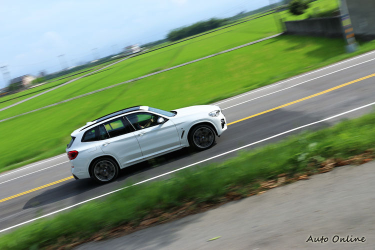 底盤承襲M Power源自賽道熱情的運動基因,可以感受到設定要硬朗,但它的硬在可接受範圍內,不會對於舒適性有太大的影響。M款跑主動式跑車化懸吊讓車身高度降低後車開起來更穩,結合xDrive智慧型可變四輪傳動系統,始這輛中型休旅車能在地表穩穩奔馳,X3 M40i的xDrive系統後輪輸出比例高於一般車型,就是要保有BMW M一貫優異的性能、敏捷度以及牽引力,徹底解放該有的駕駛樂趣。