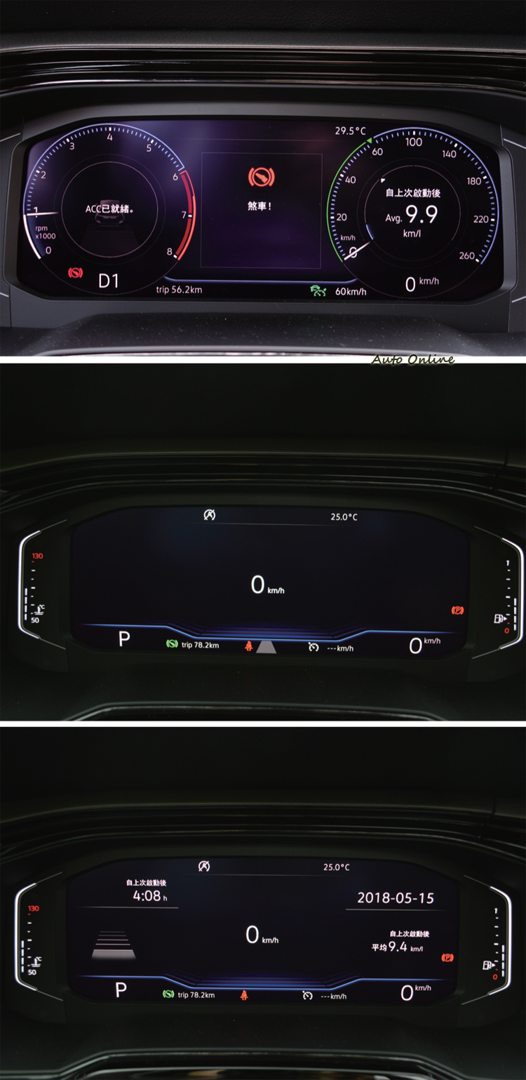 媲美高級車的科技質感![]() 內裝格局完全擺脫了舊款過於陽春的缺點,比照7代Golf導入水平概念的時尚風格,雖然還是採用了中央螢幕、音響面板、排檔座的傳統架構,但由於MIB資訊娛樂系統使用的是鏡面玻璃觸控設計,搭配橫跨駕駛艙的全幅儀表台飾板,營造出來的整個前座科技感和質感還是很到位。這組MIB系統同時整合了藍牙、音樂播放和App Connect多媒體手機鏡射功能,而且不需透過旋鈕就可直接觸控操作,使用上沒有發現什麼問題;若是硬要說點什麼,我們會說這畢竟只是基本款的8吋機型,支援功能較少以外,也沒有像9.2吋機型那樣能夠手勢控制,不過看在全車系都標配的份上,實在沒什麼好挑了。 ![]() ▲數位儀錶提供了虛擬雙圓儀錶、全景式電子儀錶以及附加資訊等三種模式。