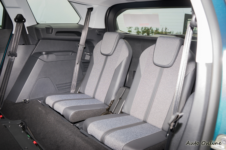 第二排座椅地板是全平坦的,腿部空間也還不錯,且可做前後150mm滑移調整與椅背五段角度調整。至於第三排七人座空間,若以165公分乘客乘坐來說,膝蓋與前方還有一個拳頭距離,所以基本的乘坐實用性是OK的,不會是只能給小小孩坐,如同雞肋般的存在。