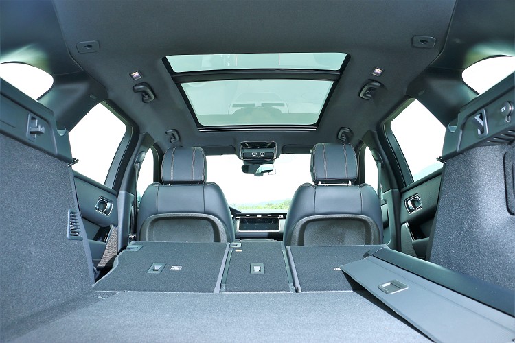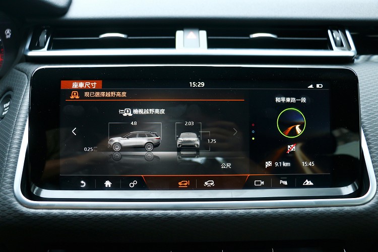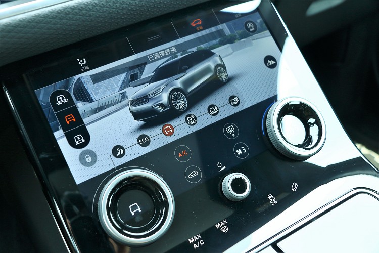 兩個螢幕控制全車功能進到車內更是另一亮點的發現,與車外設計概念相同,簡約的裡面捨去傳統過於複雜的按鍵,中控台被兩個10吋觸控螢幕給取代。上方螢幕主要是影音系統、導航、車輛設定等功能,完全以觸控面板方式操作;下方則整合新世代 Terrain Response○R全地形反應系統以及冷氣空調,搭配兩組多功能旋鈕,可調整溫度、音量等常用功能。前衛的介面需要點時間來適應,熟悉每一項功能所在位置,第一次操作會有一點手足無措,使用過後知道功能的布局就沒有太大問題。 ![]() ▲中控台可分為上下各10吋螢幕,控制車輛所有的功能配備。![]() ▲座椅採半皮半麂皮,藉由醒目的縫線達到最佳質感。![]() ▲後左有獨立出風口但沒有溫度可控制,椅背可以做適度的電動角度調整。![]() ▲如果後座椅背傾倒之後可達到1731置物容積,帶任何物品去旅行都不成問題。